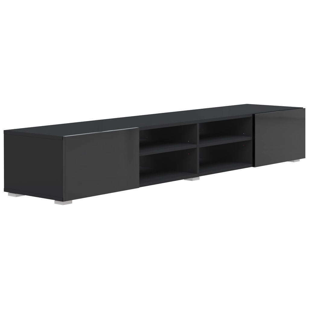 Update your living room with the Black Podium 185 TV Stand from Symbiosis. Featuring two large drawers and two open shelves, perfect for storing all your entertainment equipment. The back panel has opening for all your cords so you can keep them hidden. This contemporary design will coordinate with almost any aesthetic. Symbiosis furniture is made in France, Eco- Friendly and shipped flat packed.