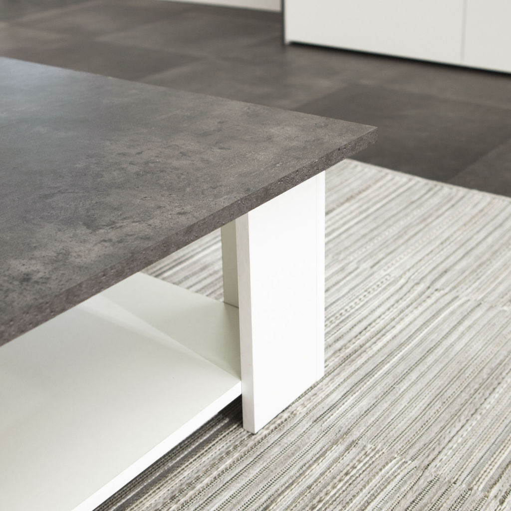 The Symbiosis Square Coffee Table in White and Concrete will help bring the look of your living room together. This table has clean lines and features a storage shelf. The body is matte white and the table top is faux concrete. This contemporary piece is versatile and will go with many different styles. Symbiosis furniture is made in France, Eco- Friendly and shipped flat packed.