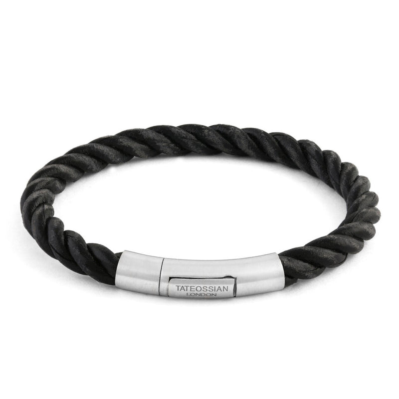 Italian leather has been expertly braided into this twisted retro looking style, with three classic Color combinations to choose from. The chunky bracelet has been finished with our sleek, satin finish clasp. Tateossian collection of designer leather bracelets for men are designed to provide the modern gentleman with a luxurious, eye-catching accessory that amplifies both formal and casual outfits. Perfect everyday bracelet for an active lifestyle.