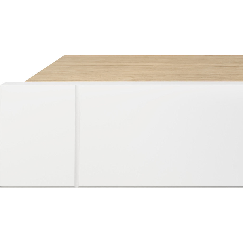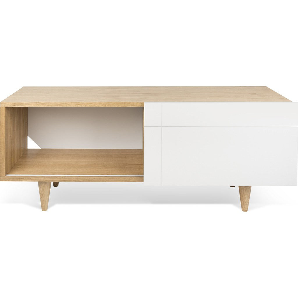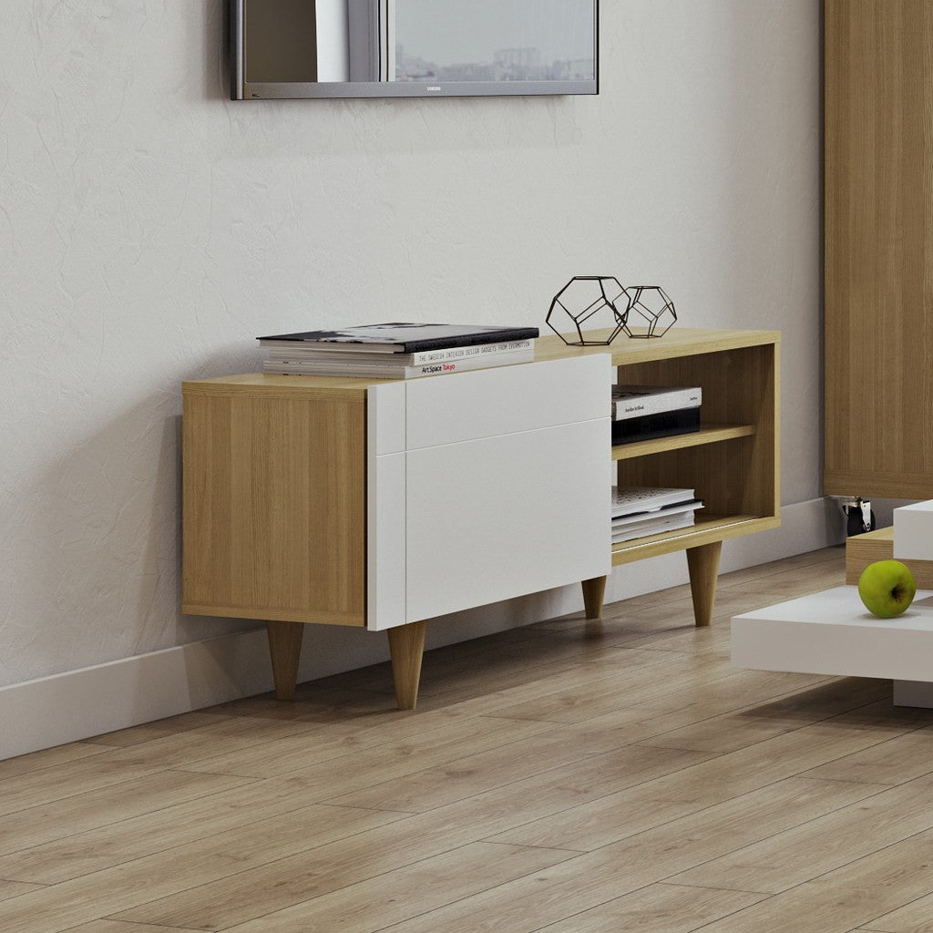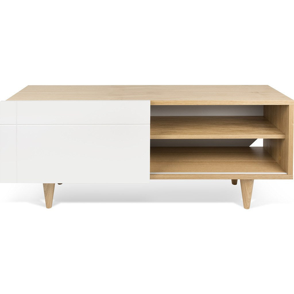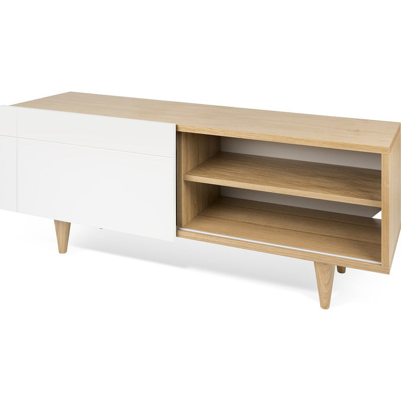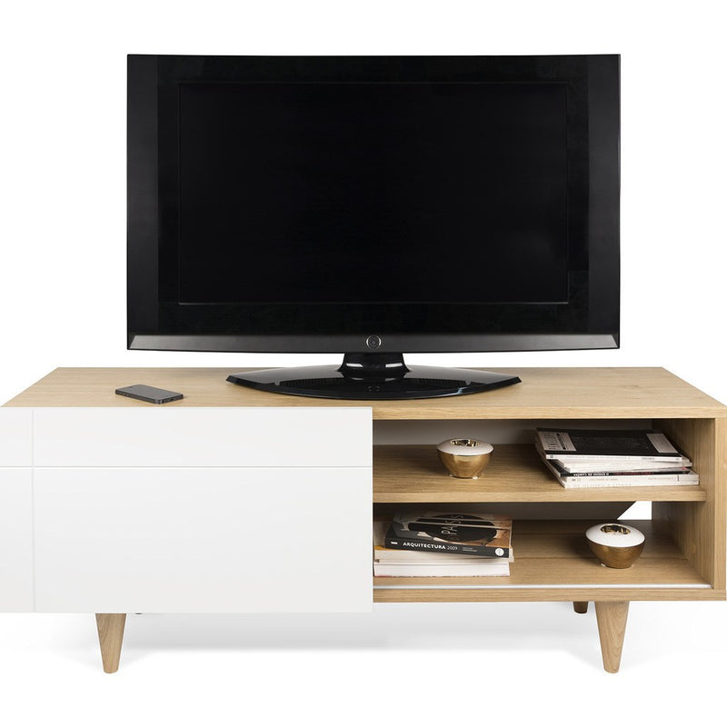 The Cruz Tv Table from TemaHome features a minimalist design with a maximum amount of functionality. ��With a variety of ways to store and display your Tv and favorite decor items, this TV stand��is ideal for your loft or small apartment. ��Crafted from veneered natural oak with a white sliding accent door. ��