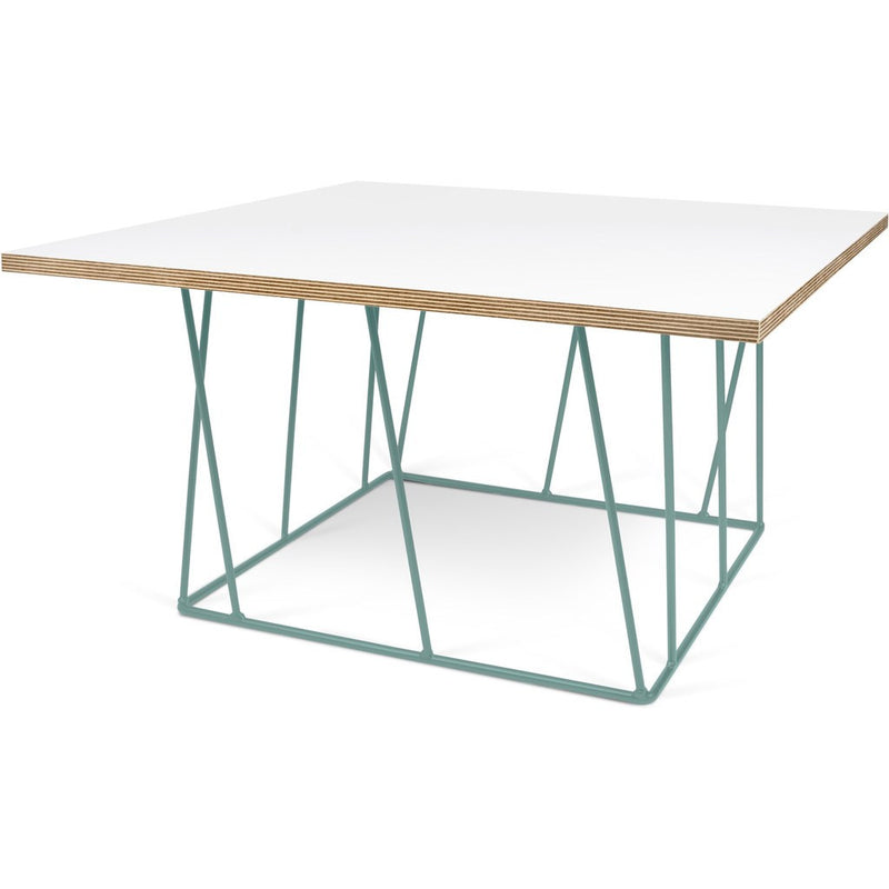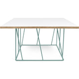 TemaHome Helix 30"x30" Coffee Table | Pure White & Plywood / Sea Green Lacquered Steel
