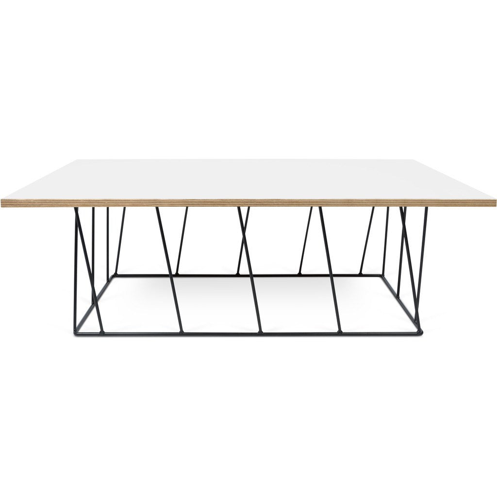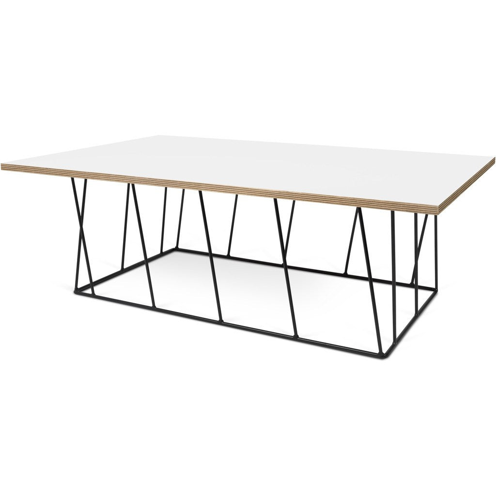 This large Helix Marble Coffee��Table features a unique design with a white and plywood tabletop and a black metallic base constructed from crossing metal rods. ��The combination of wood��and metal provides for a strikingly modern aesthetic that is sure to complement any space. ��Pair with the matching accent table to complete the look.