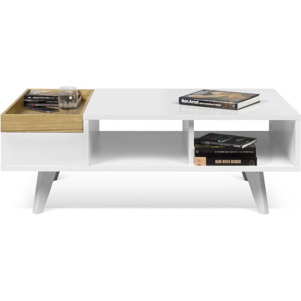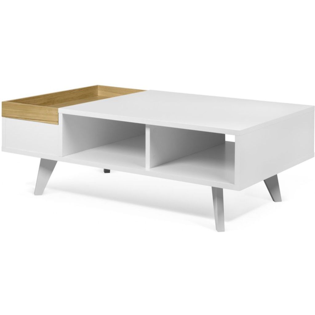 The��Plat�� Coffee table from TemaHome is a cross-functional living room with piece outfitted with a portable oak veneer tray and hidden��compartment below. Every other element of this coffee table is painted in a�� clean pure white finish to add a contrasting element to this piece's contemporary aesthetic. Get a coffee table that will accent your modern home while offering much need storage space with TemaHome's Plat��.