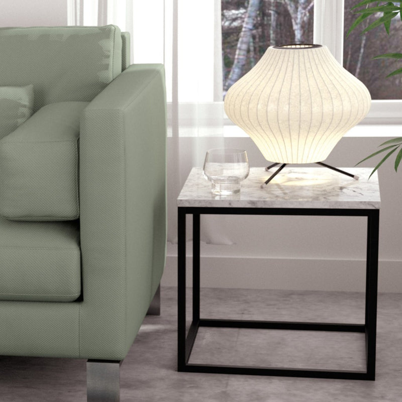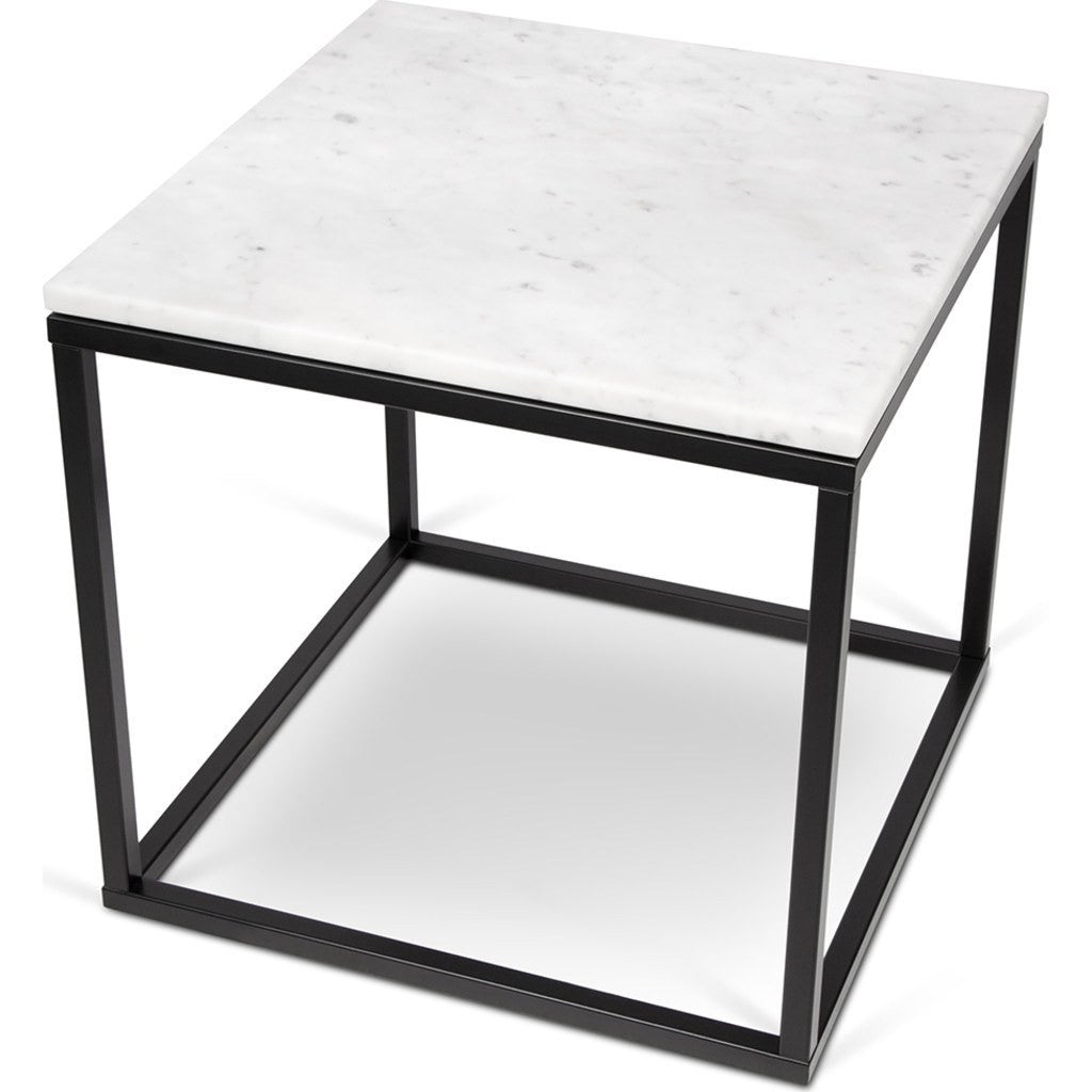 TemaHome Prairie 20"X20" Marble End Table | White Marble Top/Black Lacquered Steel Legs