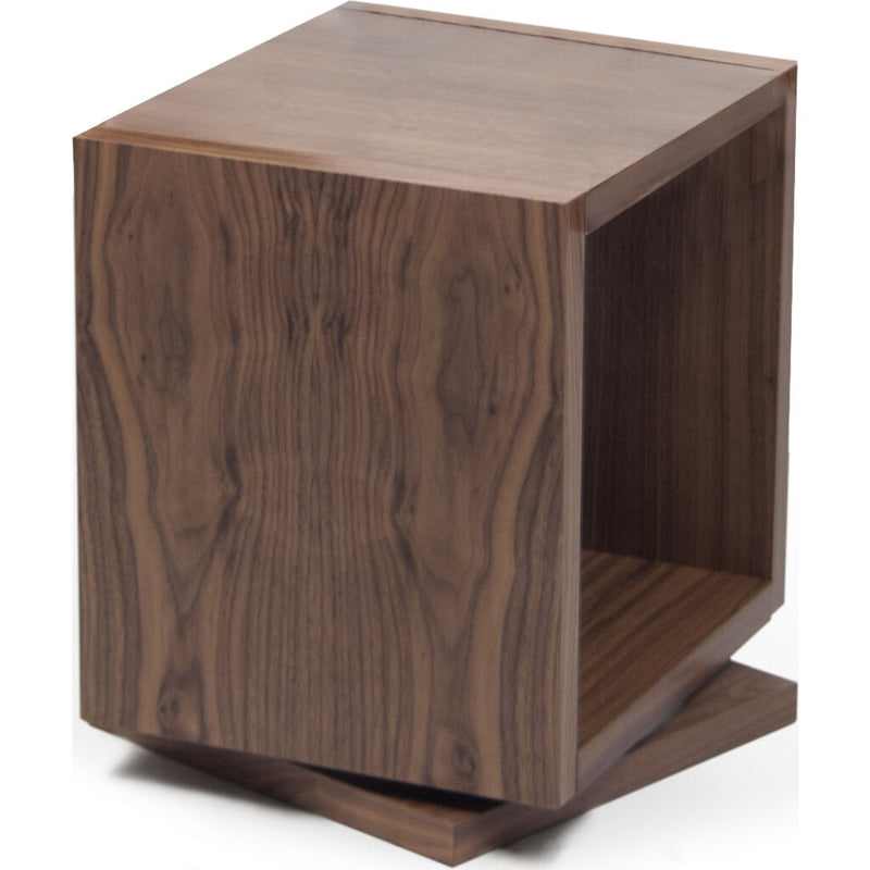 The Shell's functionality allows it to be either a shelving unit, a space divider and a decorative piece. This rotating unit was designed to literally deliver a "spin" to any space. This multi-purpose, swiveling contemporary shelving unit can store much more than just books and works great as a storage end table. The Shell Shelves are constructed from honeycomb inlays wrapped and veneered to decrease their weight and increase their strength and durability.