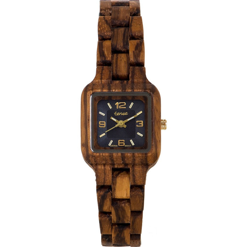 Sustainability and distinctive style are the hallmarks of Tense wooden watches. This Tense Small Summit Watch in Zebrawood features hourly markers and luminescent hands for visibility. Made from 100% recycled wood and with hypoallergenic pieces, the thin hands and minimalist face design make this watch an elegant yet understated wear.