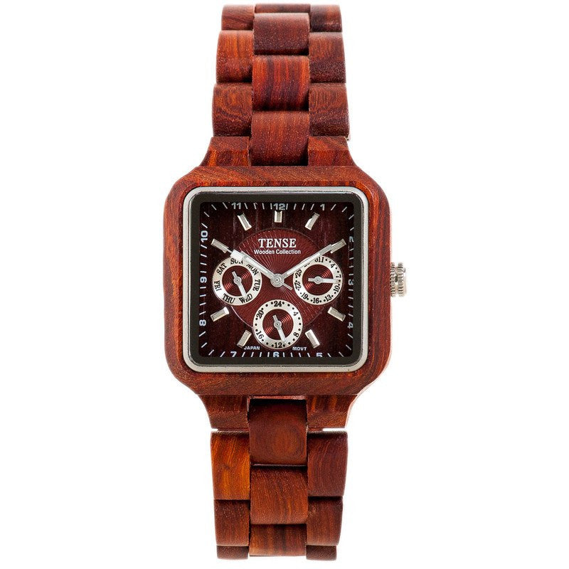 The Summit Watch represents the peak of class and natural elegance in the Tense Adventure Collection. To add versatility the Summit features calendar date, day of the week, 24 hr display, and luminescent hands along with crowns and automatic push-button clasps made of premium quality stainless-steel. The all wood bracelet is hypoallergenic and adjustable to fit a range of sizes.