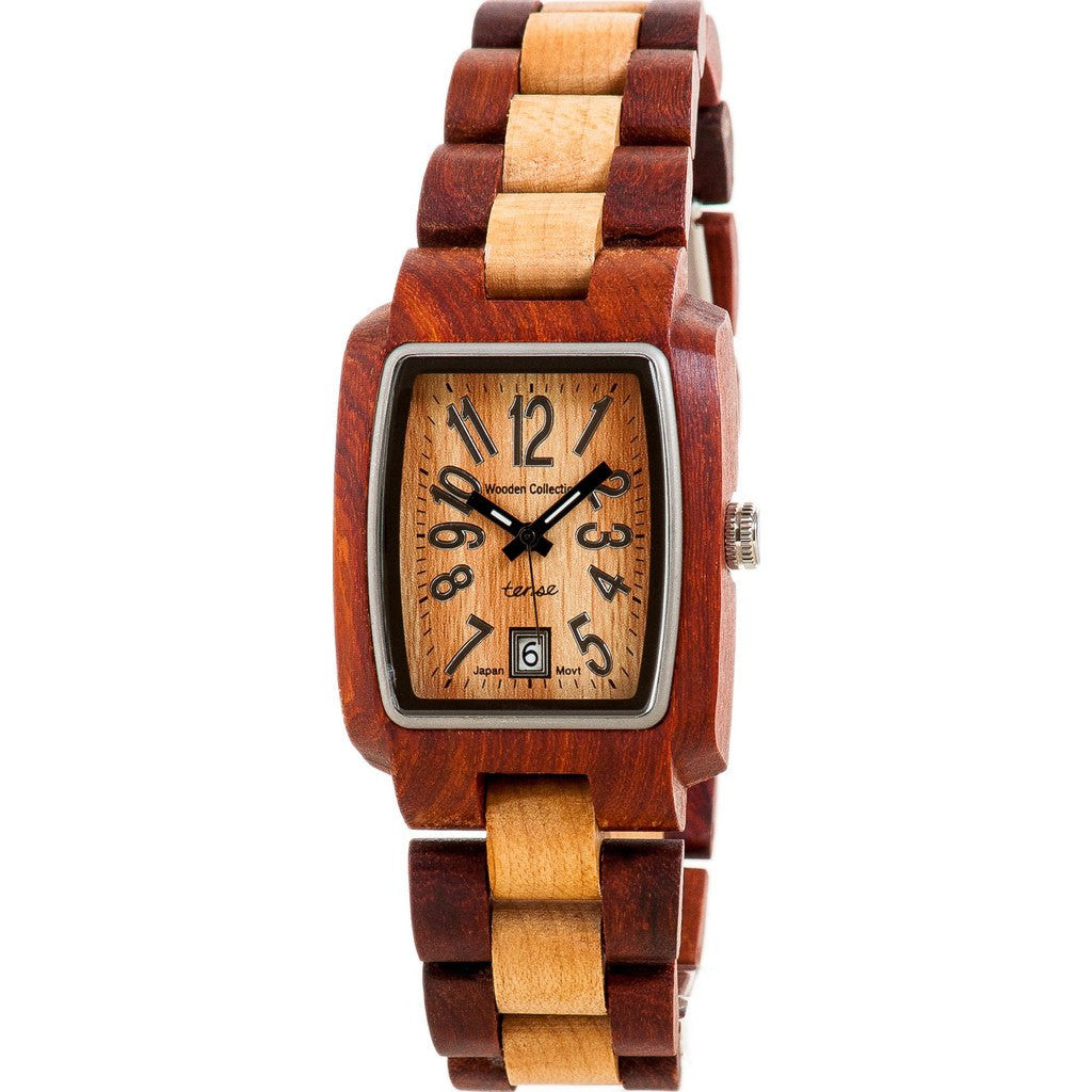 The Tense Timber will make you feel at one with nature's wonder and discovery, combining a solid rectangular face with natural rounded edges. With an all wood, hypoallergenic construction this will be one of the most comfortable, and best looking, watches you ever put on. Featuring date display, a premium stainless steel crown and clasp, and adjustable band.