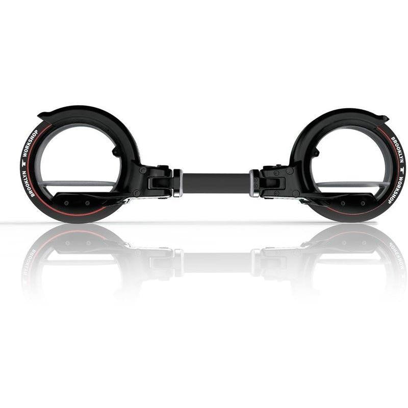 Ride the skateboard of the future! The black ANVL and Brooklyn Workshop skatecycle rides just like a normal skateboard on any flat surface but definitely doesn't look like one. Once you slip your feet into the hubless wheels, it will take a little getting used to, but soon the twisting powered propulsion will make kicking, pushing, and general pedaling a thing of the past. Ride and gain speed without ever putting your feet on the ground! On top of that, it folds up easily to fit in a normal backpack for transportation in between sessions.