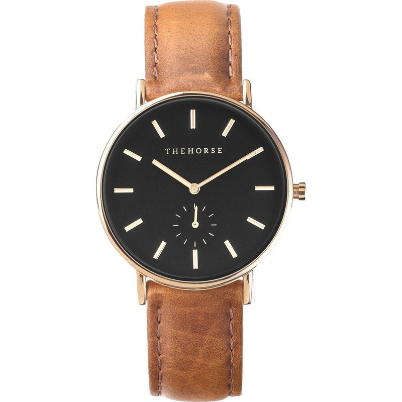 Find moments of empowerment and and peace in your busy everyday life with The Horse Classic Rose Gold Watch. Sophisticated simplicity at its finest, an ageless watch that will never go out of style. Designed with a polished rose gold case, a black face, minimalist markers, and is finished with a tan genuine Italian Calf leather band.