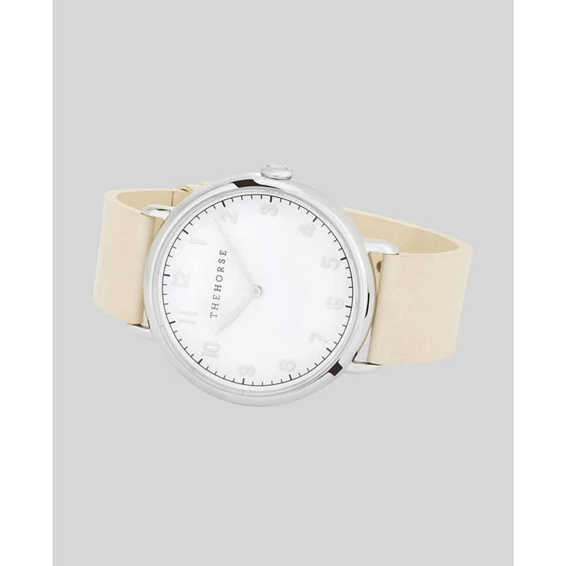 The Heritage watch has a classic silhouette that makes it the perfect everyday watch! The Horse's Heritage Polished Silver Watch with a vegetable tan leather strap is simple and sophisticated. Designed with a classic rose gold case, a cream face, minimalist markers and a date display. A luxurious watch for any occasion.