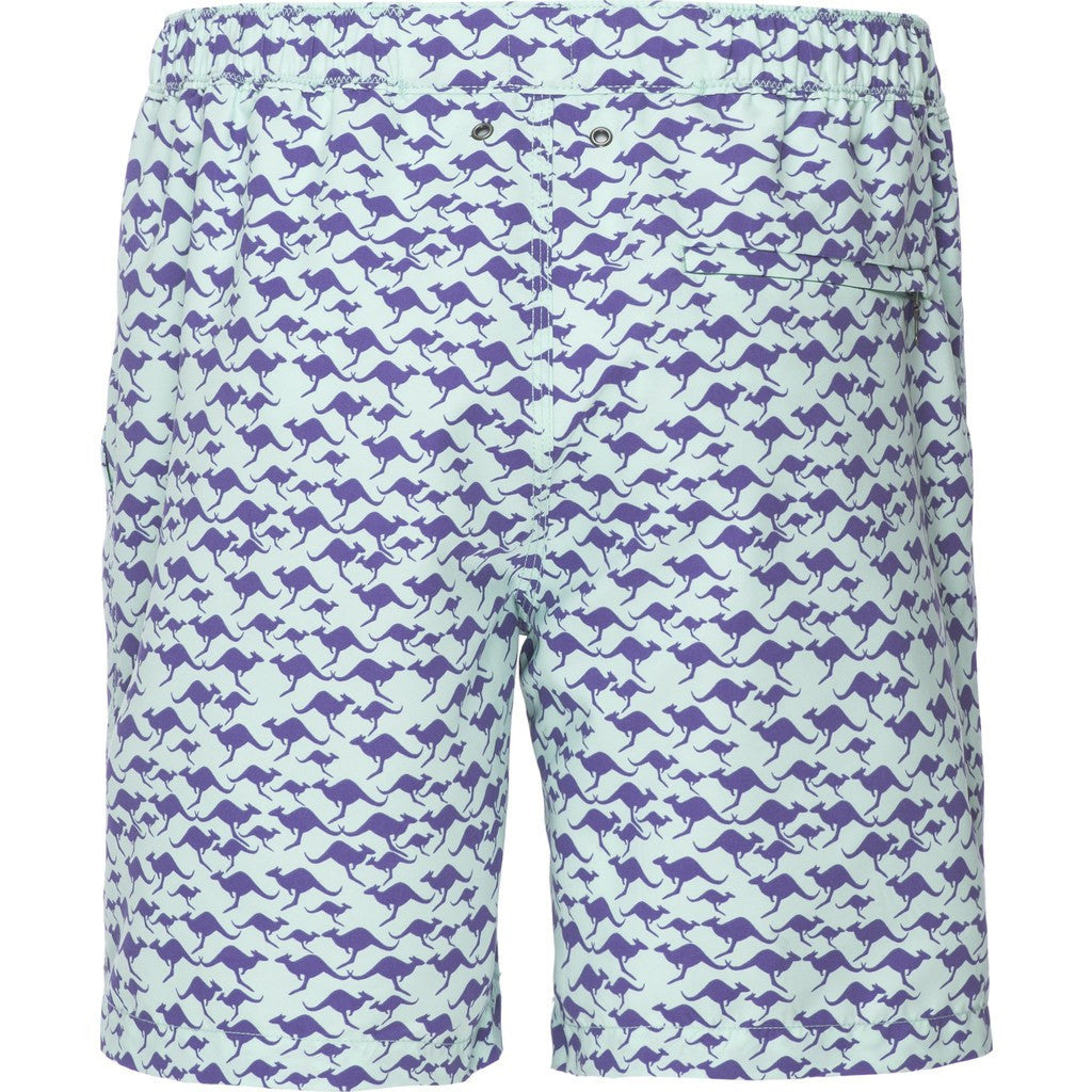 The Kangaroo Swim Trunks by Tom and Teddy have an eye-catching print that is sure to catch the attention of anyone hanging out poolside. The elastic waist and cotton mesh lining ensure that these quick drying microfiber swim trunks are as comfortable as possible. The soft and durable fabric will protect you from the sun's harmful rays without fading from salt or chlorine.