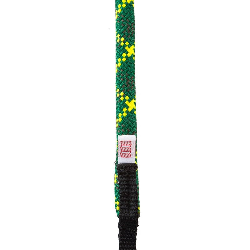 - 10.5mm climbing rope, 3/8" nylon webbing, 3/8" sliplocks