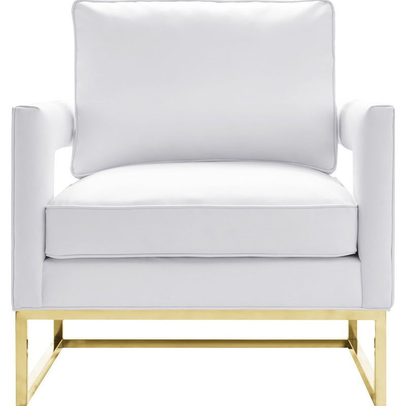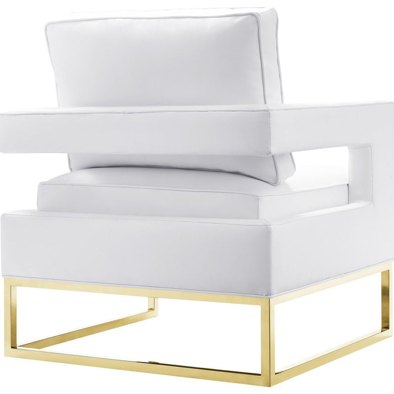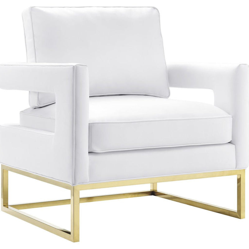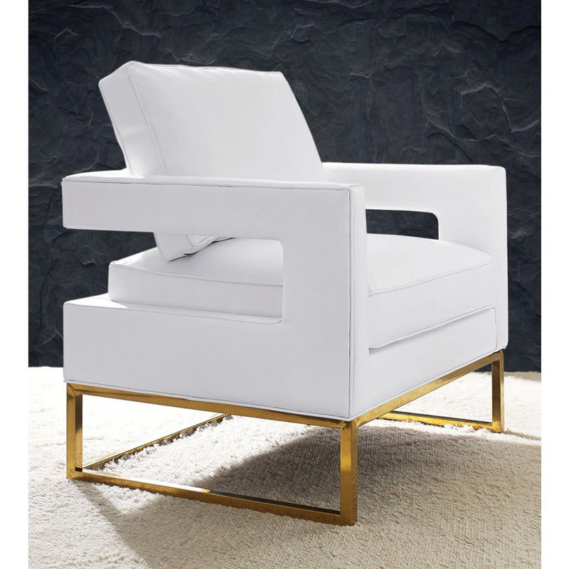 Oozing luxury and glam, the sophisticated Avery white Leather Chair has a gorgeous and unique silhouette perfectly complemented by leather upholstery and polished gold legs. For a look of modern simplicity and elegant glam, you need the Avery.