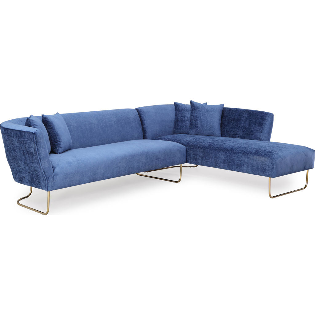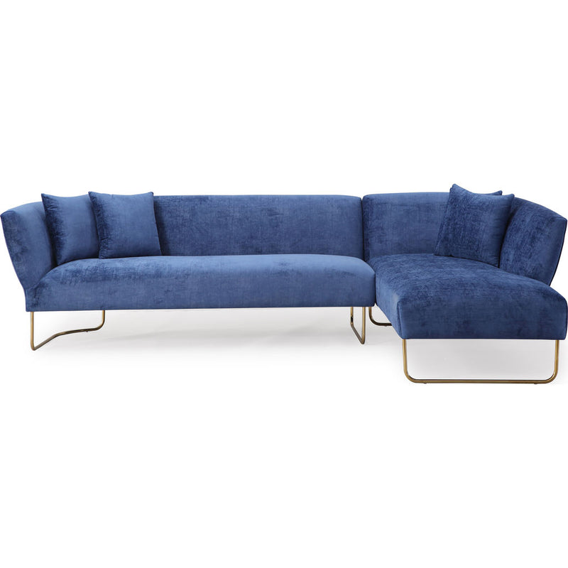 The TOV Furniture Navy Caprice Velvet RAF Sectional is a sophisticated and contemporary design. This eye-catching sofa is made with navy luxe textured velvet and features a relaxed silhouette. This couch has a modern frame with minimalistic gold stainless steel legs that provide outstanding comfort and support all making this sectional truly unique.
