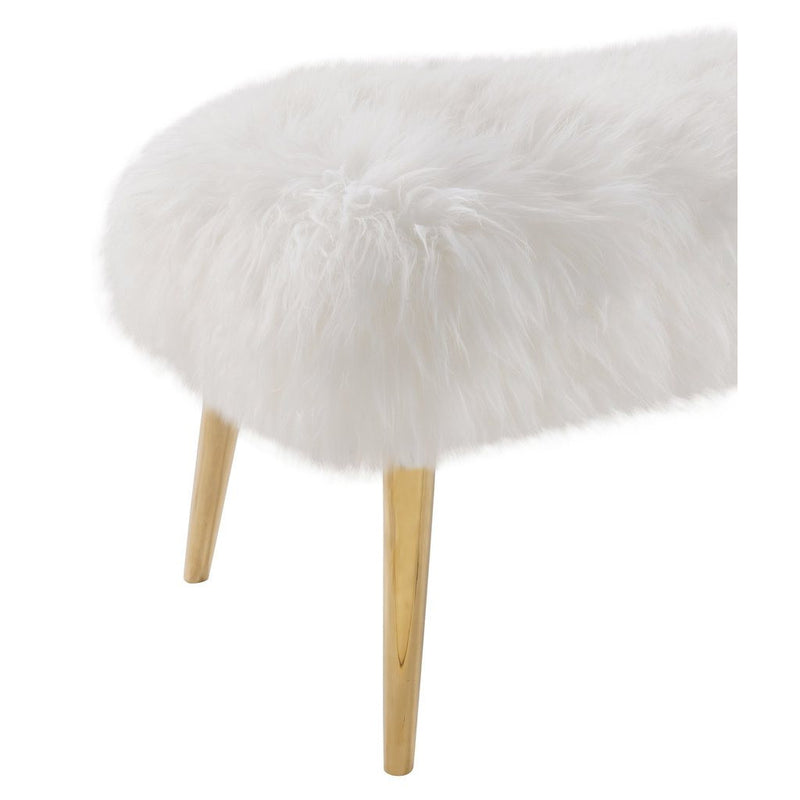 A perfectly posh bench with a genuine sheepskin top that sits pretty on luxe glossy gold legs, the Churra Sheepskin Bench is sure to add a pop of chic to any room. This bench has a modern elegance that is sure to look great at any desk, vanity, or even standing alone.