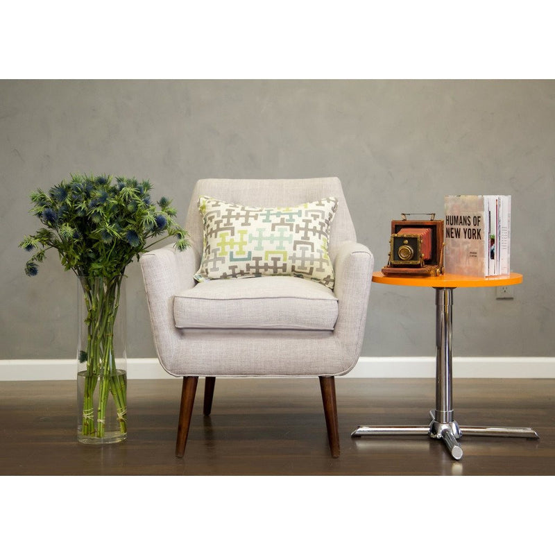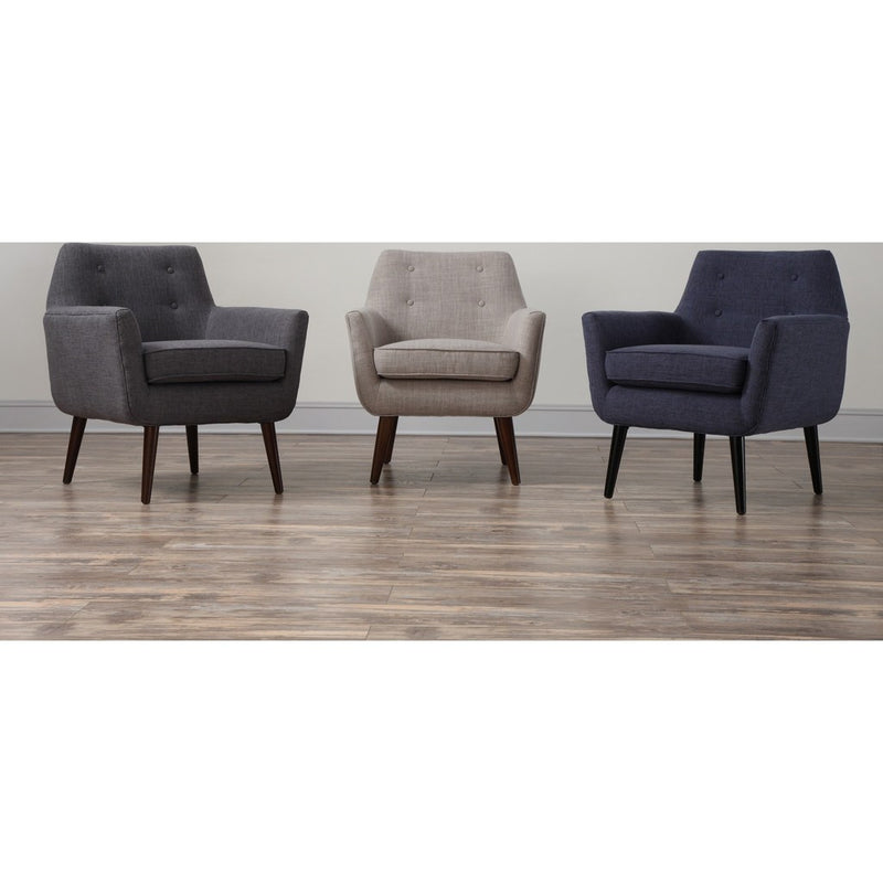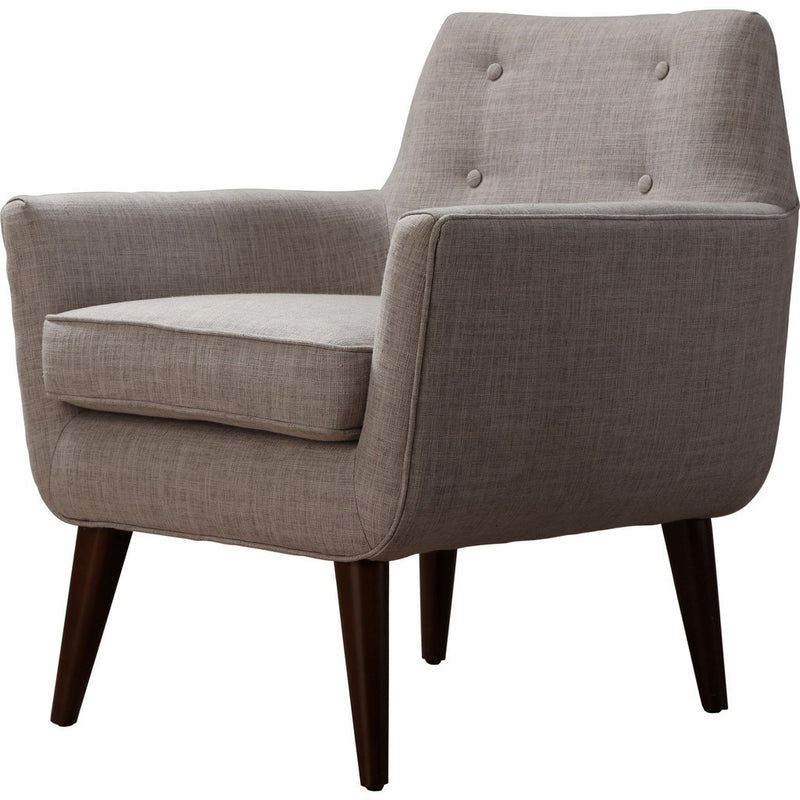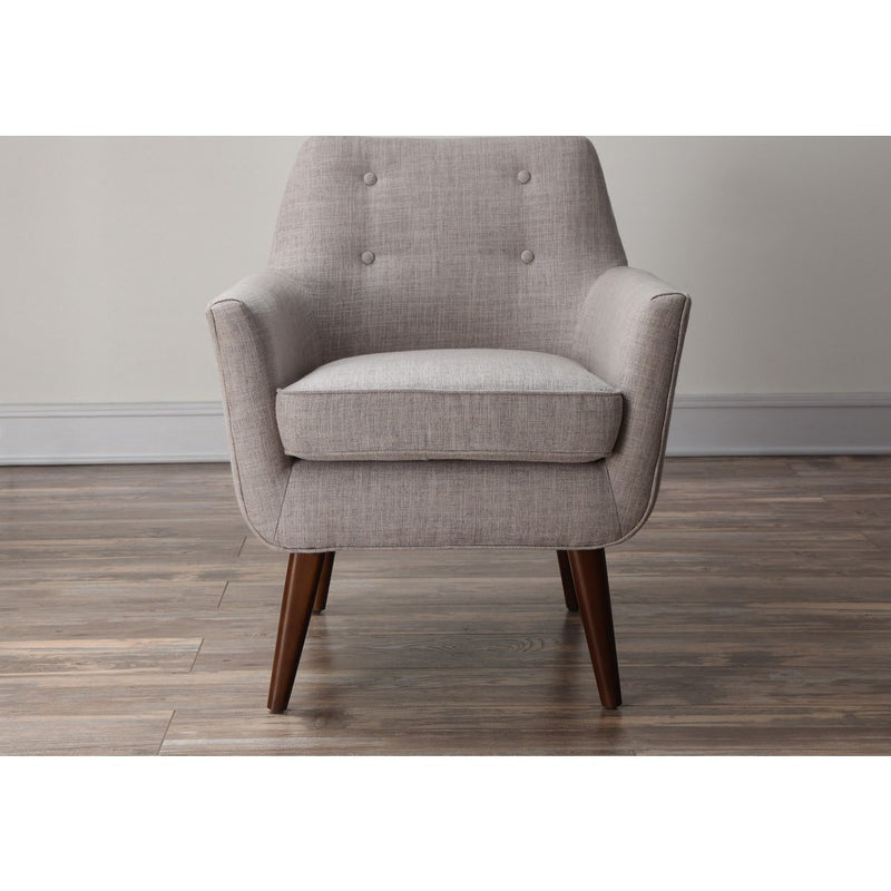 Add a little bit of mid-century modern elegance to your home with the Clyde Linen Chair. The beige, tufted upholstery is perfectly complemented by the solid wood legs, creating a refined and sophisticated spot to relax in any bedroom, living room, or foyer.
