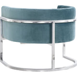 Turn up the glam with the uniquely designed Magnolia Chair. This gorgeous sea blue chair sits on a silver frame and stuns from any angle. Versatile enough for just about any room in the house.