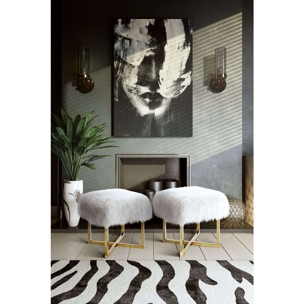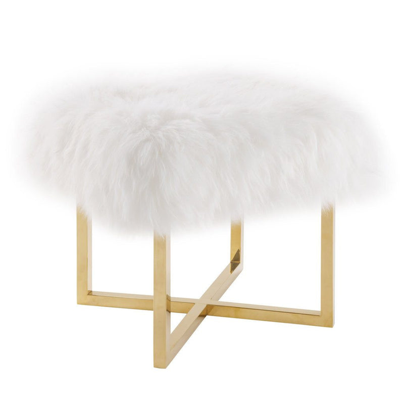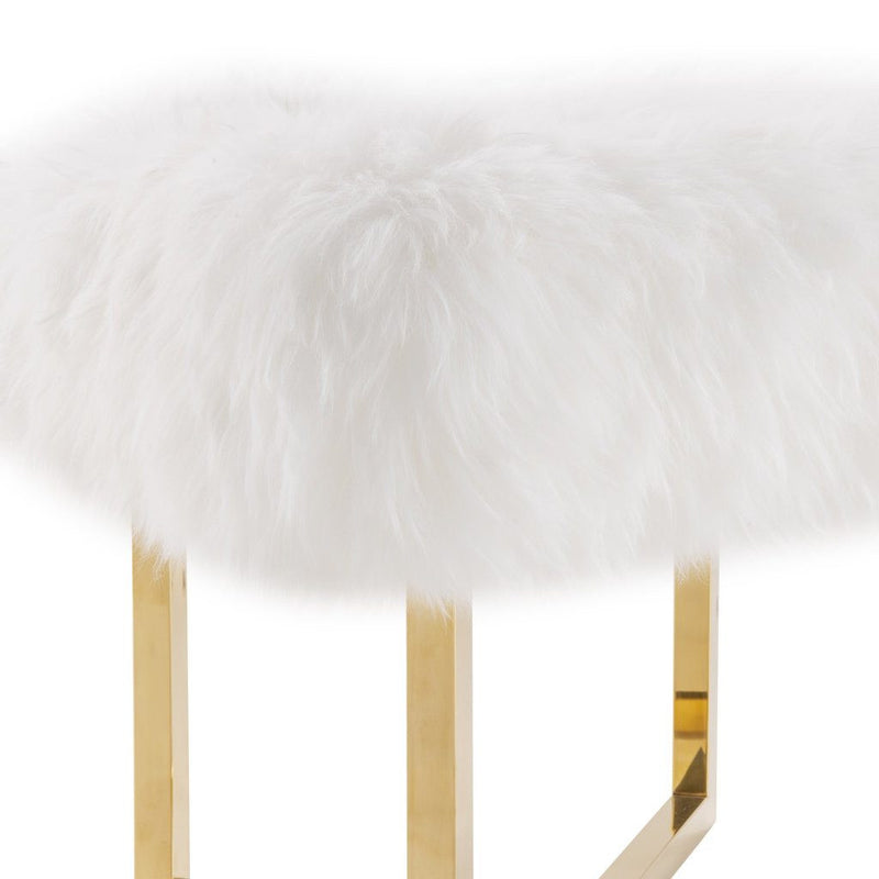 A perfectly posh bench with a genuine sheepskin top that sits pretty on luxe glossy gold legs, the Nomo Sheepskin Bench is sure to add a pop of chic to any room. This bench has a modern elegance that is sure to look great at any desk, vanity, or even standing alone.