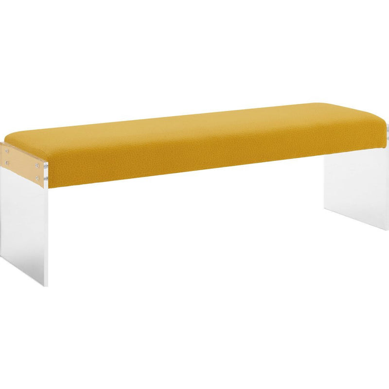 Add a pop of color to any space with the Pebbled Velvet Bench. Bringing the sunshine inside, this bench features a minimalistic design with gorgeous yellow pebbled velvet upholstery and clear legs providing a neat contrast.