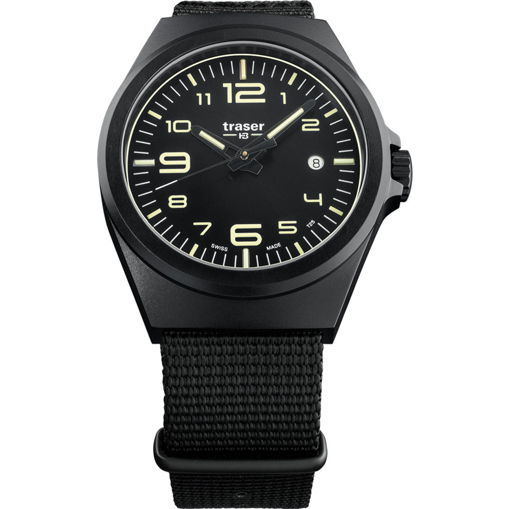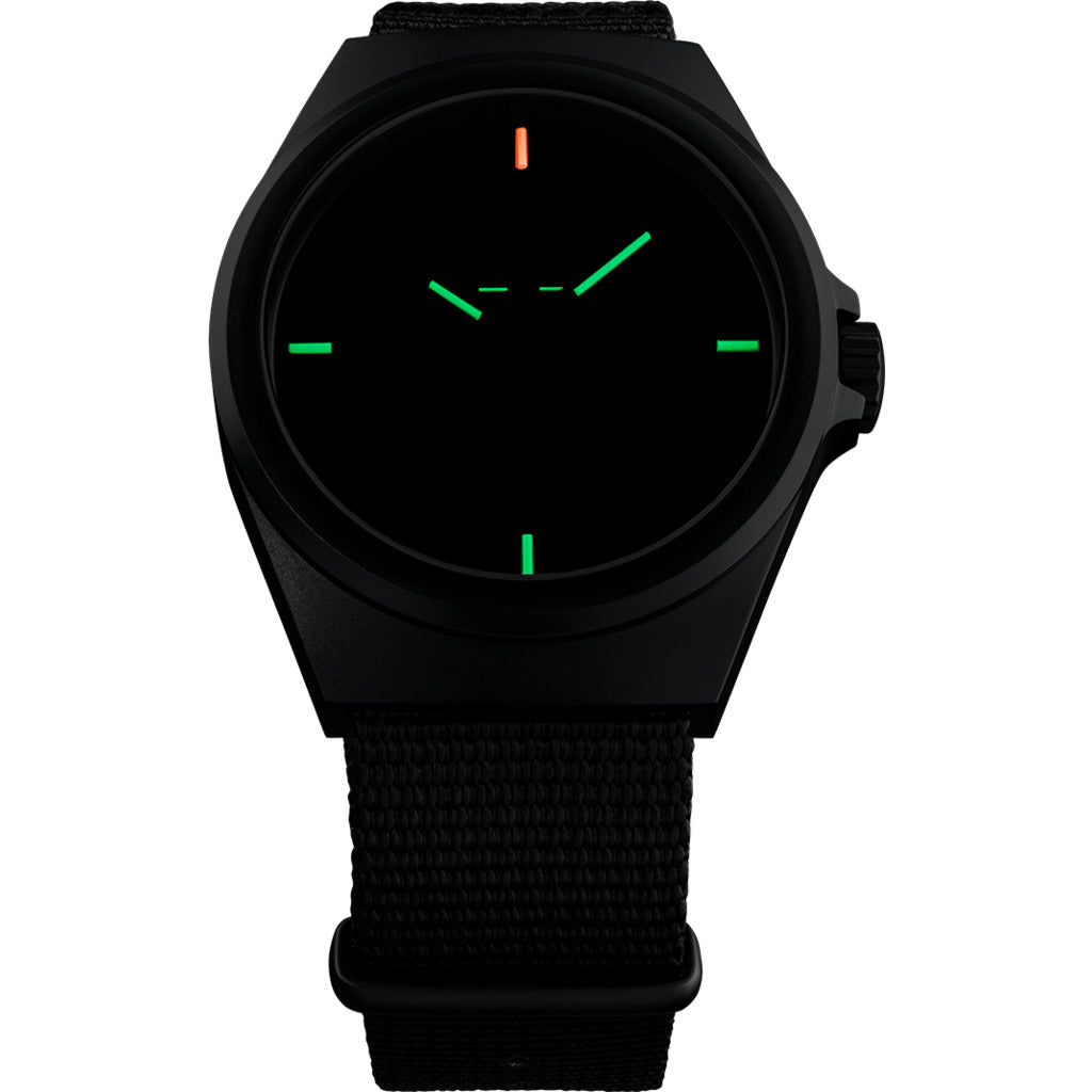 Take your day watch to night with traser H3's Black Essential M Watch and Nylon military strap that illuminates in the dark. Built with trigalight® and Super-LumiNova technology for a bright glowing time display. The elegance design and cool all black color makes this timepiece into a starry sky. Made with Swiss quartz movement, anti-reflective sapphire, and stainless steel to handle every day wear. Be stress-free when deciding your accessories with Essential M watch's classic and sophisticated design that is suitable for every occasion and compliment every outfit for the ultimate cool factor.