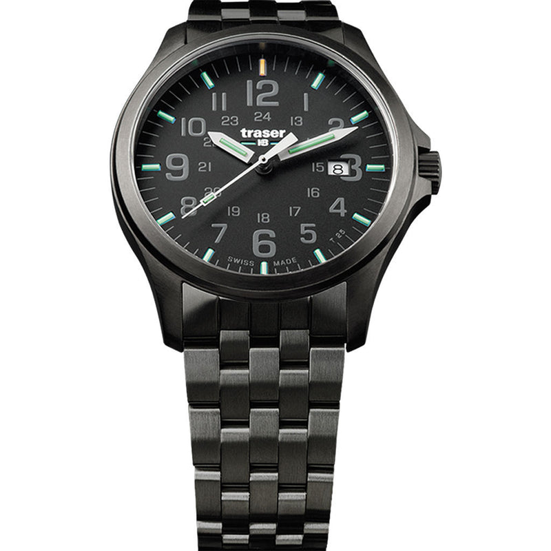 The Black P67 Officer Pro Gunmetal Watch with Steel strap from traser H3 is made with high quality materials to last for everyday use from morning to night. Ticking inside the traser H3 Officer Pro is a reliable Swiss quartz movement. Illuminated with trigalight® to bring you an easy-to-read dial in the dark. This watch transitions perfectly from light to dark for any environment. Don't just pair this luxurious design watch with suits, take it out of the office! Its anti-reflective sapphire glass, stainless steel, and water resistance features makes this a go to watch.