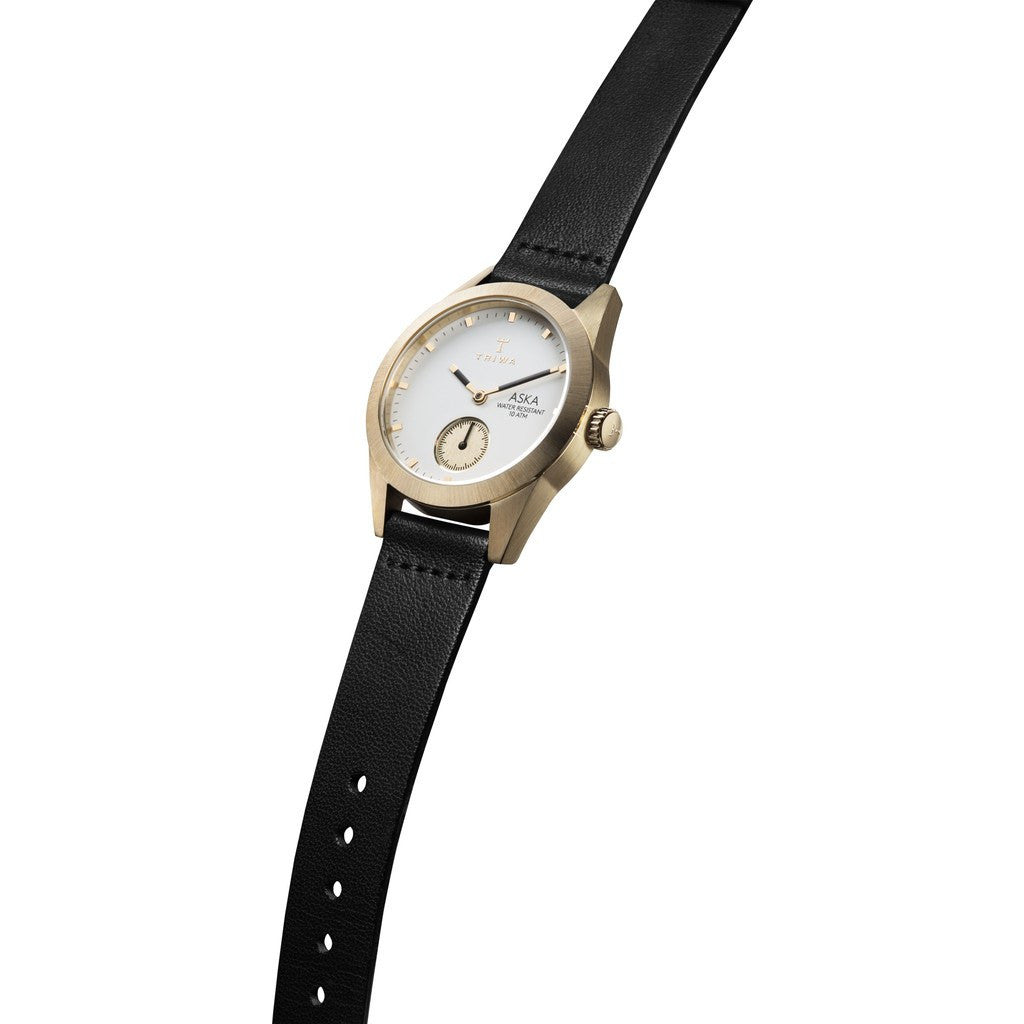 Triwa's Ivory Aska Watch has an elegant appeal with timeless style. Finished with a super slim black leather strap, the Ivory Aska compliments any occasion. Whether you're headed to work or an event, the Triwa Aska is a must have.