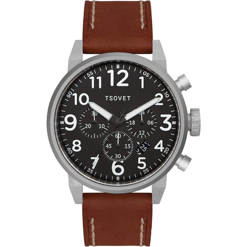 The Tsovet JPT-TS44 Quartz Chronograph Watch is housed within a 44mm 316L aerospace-grade stainless steel case and accented with precision start/stop pushers. The dial features sandwiched layers, distinct matte finish indicator hands with luminous time function, and bold numerical representations. Each component is hand built under the strictest of standards.