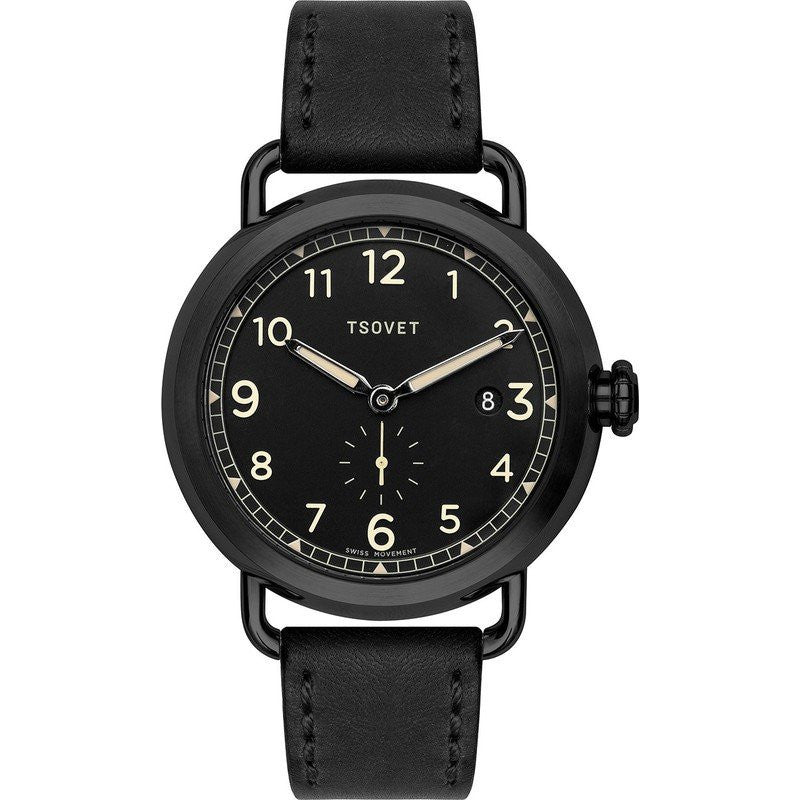The Tsovet SVT-CV43 Watch boldly marries traditional aesthetics with modern design. The rounded edges of the exterior case wall are inspired by classic pocket watches with a contoured wire lug, honoring the TSOVET 1.0 collection. Modern elements include an eloquent curved profile view, an extended crown tube, and a recessed case back that sits flush with the 43mm case, making it optimal for various sized wrists.