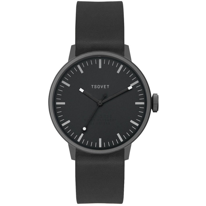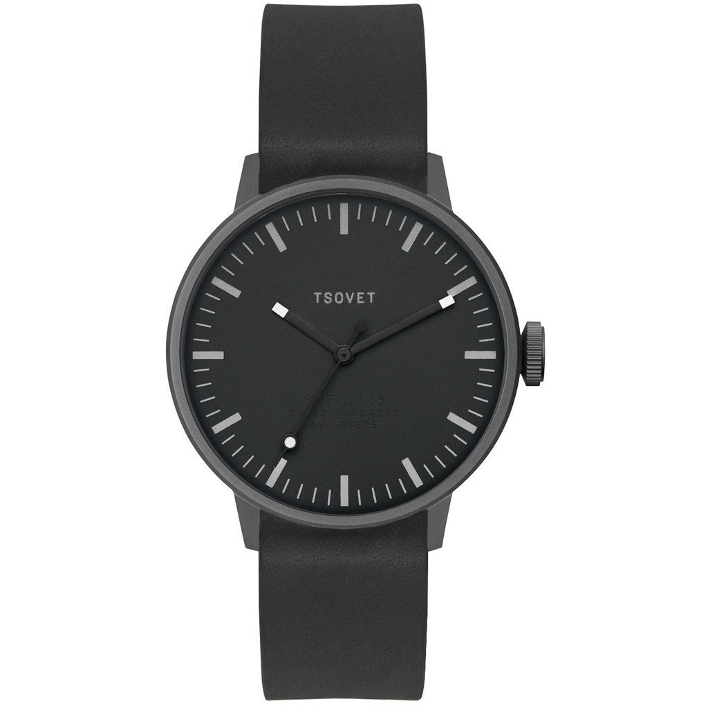 Built on the foundation of simplistic form and function, the field-ready Tsovet SVT-SC38 Matte Black Watch achieves both attributes effortlessly. The 38mm case is comprised of 316-L stainless steel and houses a Swiss Quartz Movement. A bubble mineral crystal, vegetably dyed Italian leather strap, and traditional dial markings finish this elegant, but rugged, time piece.