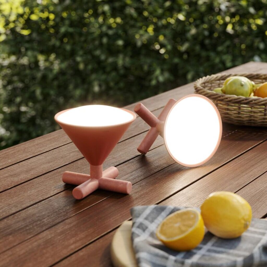 This playful desk lamp can be used to create a variety of ambiences by sitting on its handle or on its lens. The unique legs of Cono also double as an easy to grab handle, allowing you to move its position or bring it with you on the go. Cono comes with rechargeable batteries as well as a USB cord for easy recharging when running low (charge lasts for up to 4.5 hours). This interactive tabletop lamp can be turned upside down for just a hint of illumination, angled toward a book or even carried down a dark hallway like a torch. Cono also has a dimmable switch, making it easy to change the intensity of light. Its integrated LED is long-lasting with a lifespan of up to 30,000 hours, making it more energy efficient. Measures 5.6 x 5.3 x 5.3 inches (14 x 13.5 x 13.5 cm).