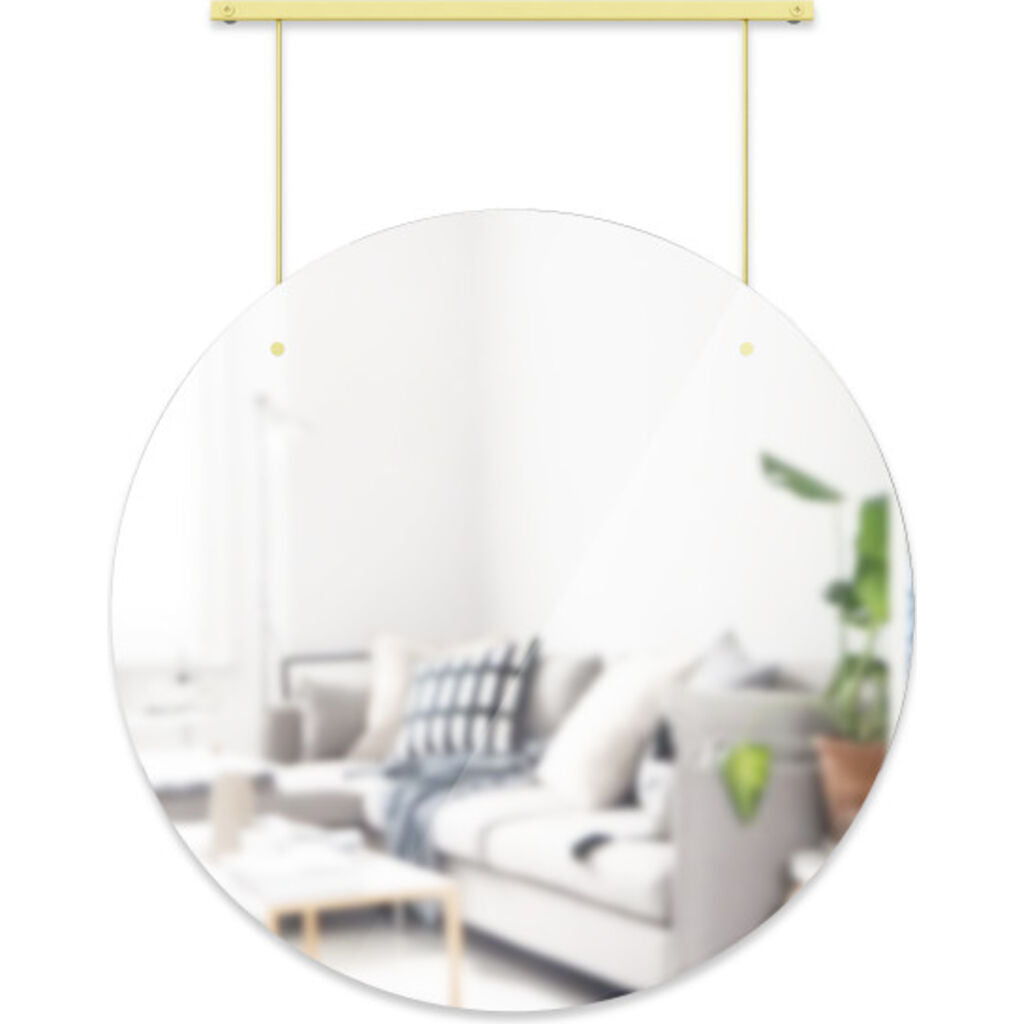 A one-of-a-kind 24" mirror suspended from a beautiful metal bar; the Exhibit Mirror makes a unique impact on your wall. Exhibit’s large round shape brings light into your space, while its modern design creates an accent piece for any wall in your home. Exhibit Wall Mirror comes with all necessary hardware for a smooth installation and can be used in any room of the home.