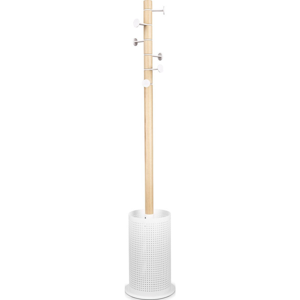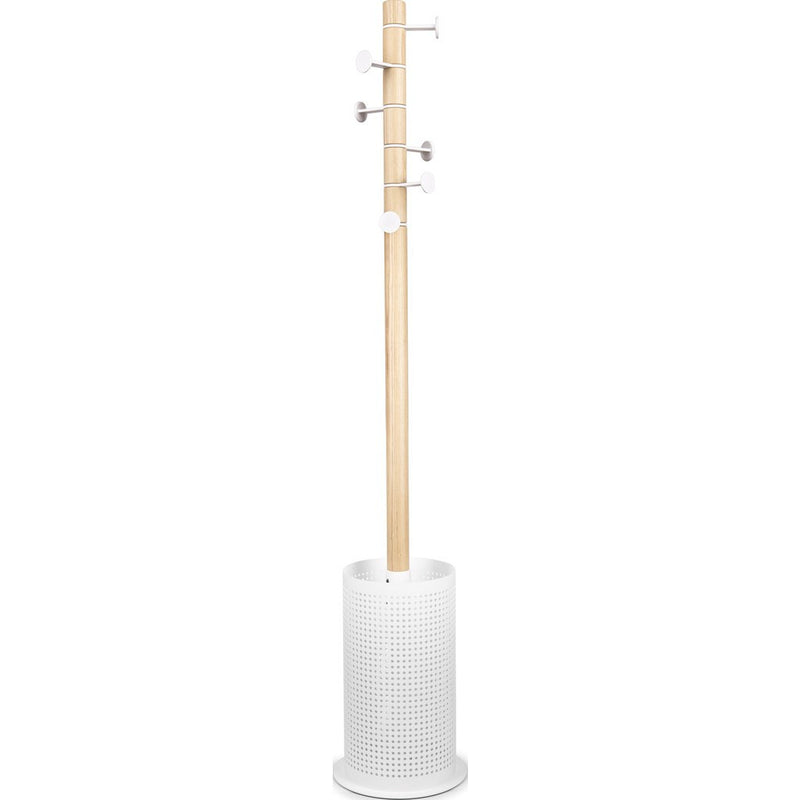 The Promenade Coat Rack is sleek and simple in design and quite robust in functionality. With six rotating coat hooks and a plastic-lined umbrella holder, this ultra-functional keeps your entryway and house organized and clutter-free in style. The elegant wood is complemented by the white perforated metal bottom and is sure to brighten up any small space.
