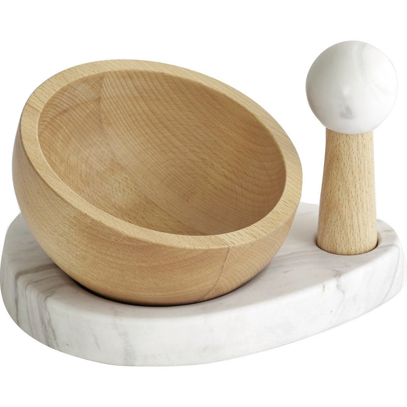 This marble and beechwood mortar and pestle is a versatile set of tools for grinding spices, herbs, and tea leaves. The wood bowl is great for gentler milling, while the marble dish is better suited to hard crush.