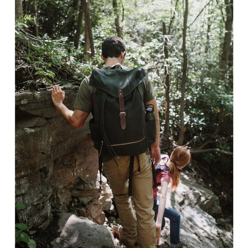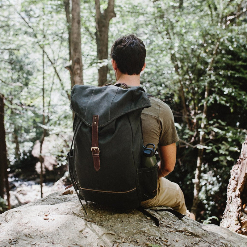 The Atlas is a timeless backpack that is made with United By Blue's signature downpour proof durable canvas. This moss pack features a fold-over flap, a grab handle, two side panel water bottle pockets, a top exterior zip pocket, a lower front zip pocket and drawstring closure. The padded back panel, padded shoulder straps and additional waist and chest support ensure ultimate comfort everywhere you go. For each product sold, United By Blue will remove one pound of trash from oceans and waterways.