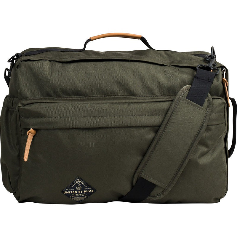 Made with 100% recycled polyester and leather details, United By Blue's Basin Convertible Messenger Pack in Olive is perfect for school, work or traveling. This water resistant messenger pack can be worn as a messenger, carried as a briefcase with the top handle or as a backpack with the padded shoulder straps. Featuring a TSA friendly laptop compartment, a leather haul strap, a removable crossbody strap and adjustable strap options, the Basin is a must-have. For every product sold, United By Blue will remove one pound of trash from oceans and waterways.