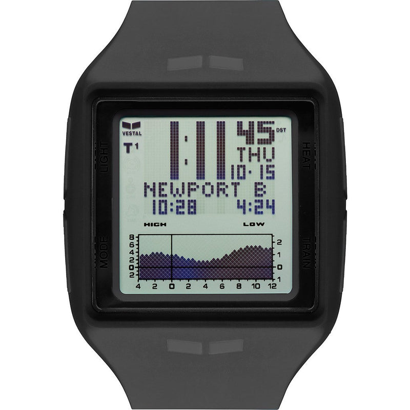 Vestal brings you a premium tide & train watch in the The Brig Watch by pro surfer Jordy Smith. Track the tide at over 200 beaches worldwide with The Brig Tide & Train using the digital tide graph that offers current tide height. Track your training with easy access to Vestal's custom training mode that includes an interval timer, and Heat Mode with countdown timer for practicing your surf heats like Jordy. The polyurethane watch strap features Vestal's own patent-pending OKTOLOCK system and OKTOGRIP technology to keep the watch secured on your wrist but while remaining breathable and lightweight.