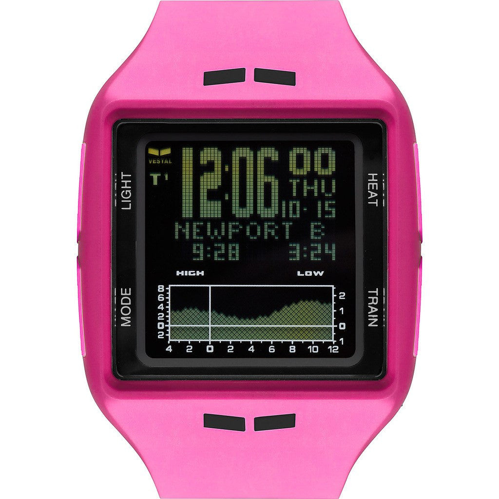 Vestal brings you a premium tide & train watch in the The Brig Watch by pro surfer Jordy Smith. Track the tide at over 200 beaches worldwide with The Brig Tide & Train using the digital tide graph that offers current tide height. Track your training with easy access to Vestal's custom training mode that includes an interval timer, and Heat Mode with countdown timer for practicing your surf heats like Jordy. The polyurethane watch strap features Vestal's own patent-pending OKTOLOCK system and OKTOGRIP technology to keep the watch secured on your wrist but while remaining breathable and lightweight.