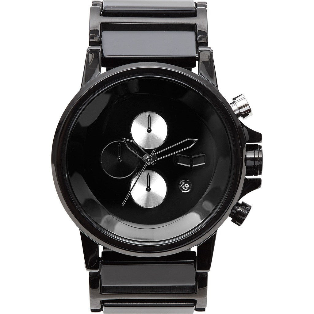 The Plexi Acetate Watch from Vestal offers a unique and striking design. The simplistic dial and premium Japanese chronograph movement create a bold yet refined statement. Its sleek silhouette is comprised of a combination of stainless steel and acetate links, to complement the very modern feel of the face. Acetate is most often found in high quality Italian designer sunglasses, allowing for a hand-crafting process that truly takes each piece to the next level of sophistication.