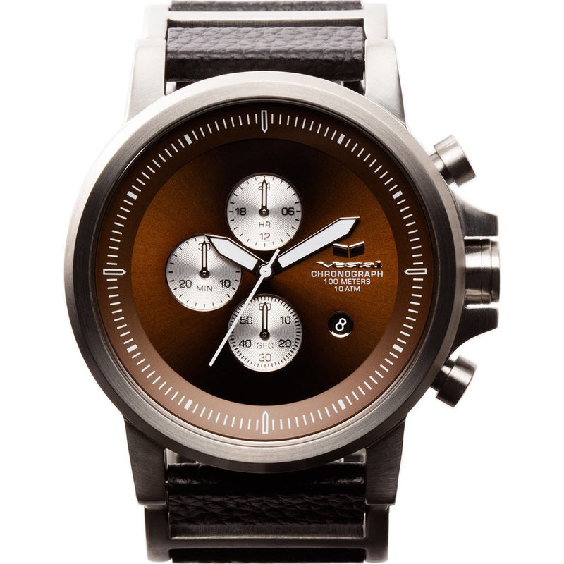 Vestal's Plexi Leather Watch offers a unique and striking design. The simplistic dial and premium Japanese chronograph movement create a bold yet refined statement. Its sleek silhouette is comprised of a combination of stainless steel and genuine leather links, to complement the very modern feel of the face. The Plexi Leather Watch is a sophisticated piece that is sure to turn heads.