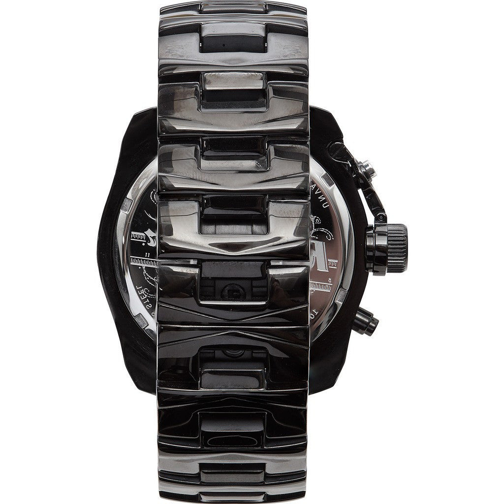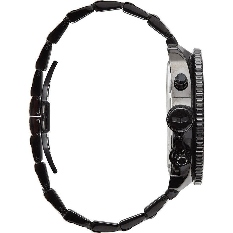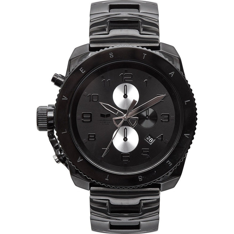 Vestal's Restrictor Watch boasts a premium Japanese chronograph movement, locked into a 50mm wide case crafted from 316L surgical-grade stainless steel. This sleek and refined watch has a unique screw-down canteen crown guard and open-link band construction. These premium features come together nicely with a butterfly deployant clasp, making for an effortlessly sophisticated look.