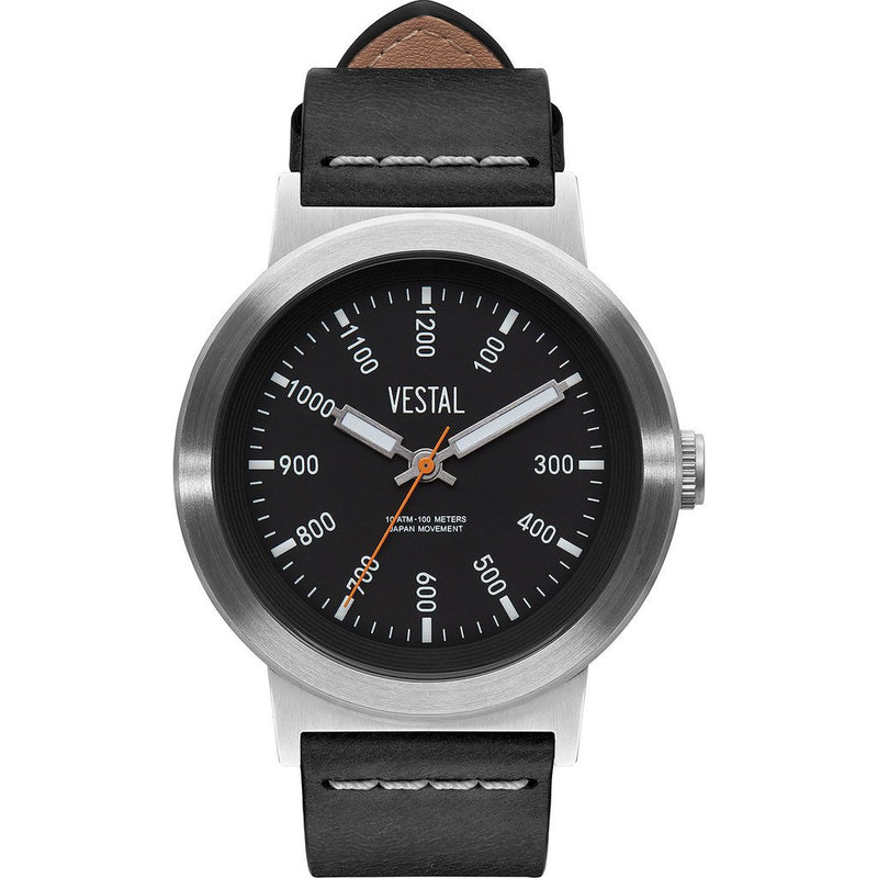 The Retrofocus Chrono Watch from Vestal features an original design influenced by vintage camera and lens designs. The unique dial features indices that are denoted by camera ISO level in place of hours, covered by a slightly domed mineral lens fixed onto a 3-piece case. A thick, high-quality Italian leather strap featuring German stitching ties the whole timepiece together to make for an ultra sleek and sophisticated accessory that is sure to turn heads.
