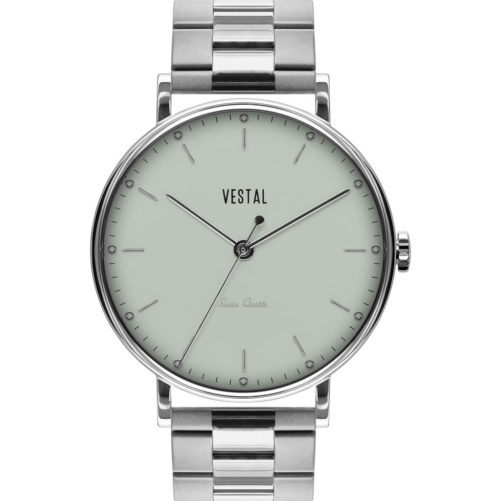 There is something to be said about a dependable watch that is equipped with quality materials and high character. The Sophisticate Metal Watch from Vestal’s watch collection never disappoints. Not only are their timepieces consistently reliable and precise, but Vestal's excellence and resilience is what separates them from other watch companies. Vestal watches are great accessories for any special occasion, as they are fine-tuned with style and expression. The Sophisticate is furnished with a silver stainless-steel 3-link strap that beautifully complements the silver case and marine dial. Some awesome features include Swiss Jewel Movement viewed through a clear crystal case-back, creating sophisticated perfection. The sleek design of the Sophisticate Series watches makes them the best option to wear at work or during play, perfect for everyday wear.