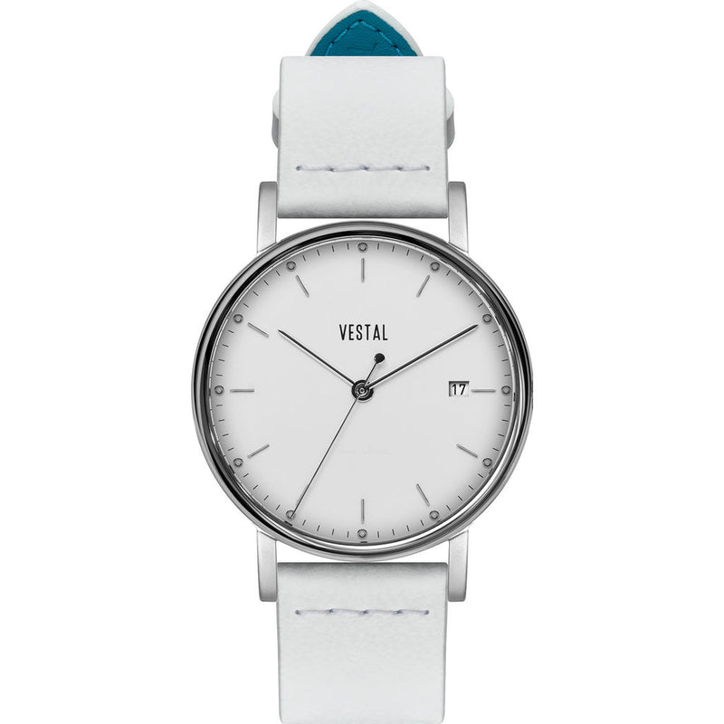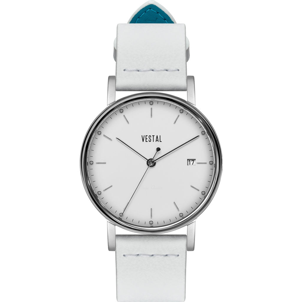 There is something to be said about a dependable watch that is equipped with quality materials and high character. The Sophisticate 36 Italian Leather from Vestal’s watch collection never disappoints. Not only are their timepieces consistently reliable and precise, but Vestal's excellence and resilience is what separates them from other watch companies. Vestal watches are great accessories for any special occasion, as they are fine-tuned with style and expression. The Sophisticate 36 is furnished with a white handmade leather strap that harmonizes beautifully with the silver case and white dial. Some awesome features include Swiss Jewel Movement viewed through a clear crystal case-back, creating sophisticated perfection. The sleek design of the Sophisticate 36 Series watches makes them the best option to wear at work or during play, perfect for everyday wear.