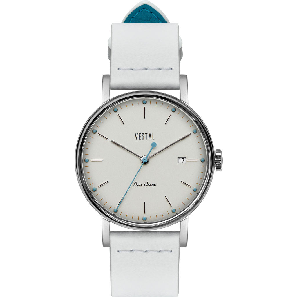 There is something to be said about a dependable watch that is equipped with quality materials and high character. The Sophisticate 36 Italian Leather from Vestal’s watch collection never disappoints. Not only are their timepieces consistently reliable and precise, but Vestal's excellence and resilience is what separates them from other watch companies. Vestal watches are great accessories for any special occasion, as they are fine-tuned with style and expression. The Sophisticate 36 is furnished with a white handmade leather strap that harmonizes beautifully with the silver case and white-blue dial. Some awesome features include Swiss Jewel Movement viewed through a clear crystal case-back, creating sophisticated perfection. The sleek design of the Sophisticate 36 Series watches makes them the best option to wear at work or during play, perfect for everyday wear.