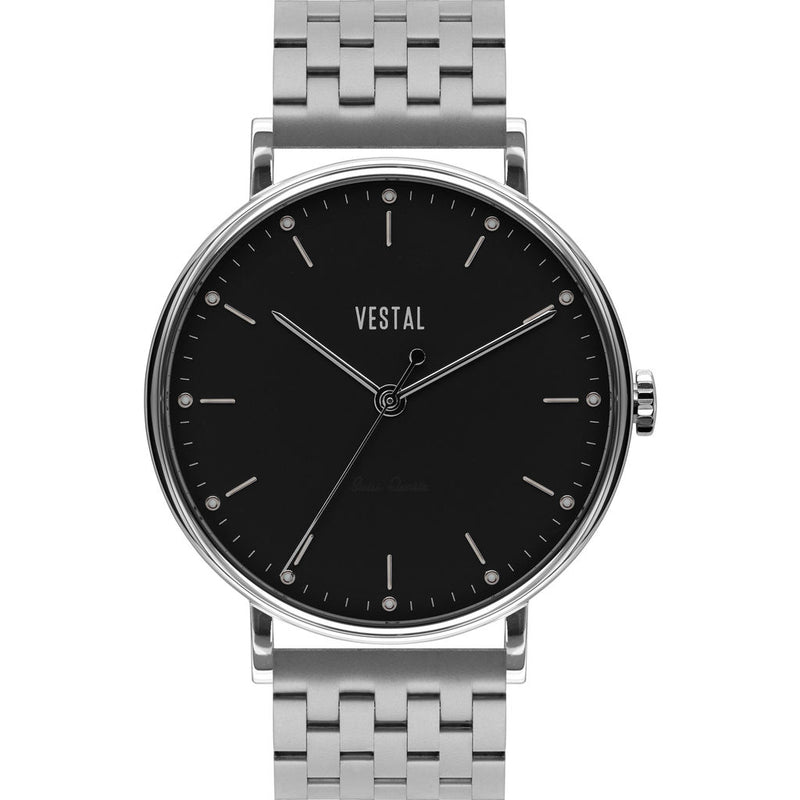 There is something to be said about a dependable watch that is equipped with quality materials and high character. The Sophisticate Metal Watch from Vestal’s watch collection never disappoints. Not only are their timepieces consistently reliable and precise, but Vestal's excellence and resilience is what separates them from other watch companies. Vestal watches are great accessories for any special occasion, as they are fine-tuned with style and expression. The Sophisticate is furnished with a silver stainless-steel 7-link strap that beautifully complements the silver case and black dial. Some awesome features include Swiss Jewel Movement viewed through a clear crystal case-back, creating sophisticated perfection. The sleek design of the Sophisticate Series watches makes them the best option to wear at work or during play, perfect for everyday wear.
