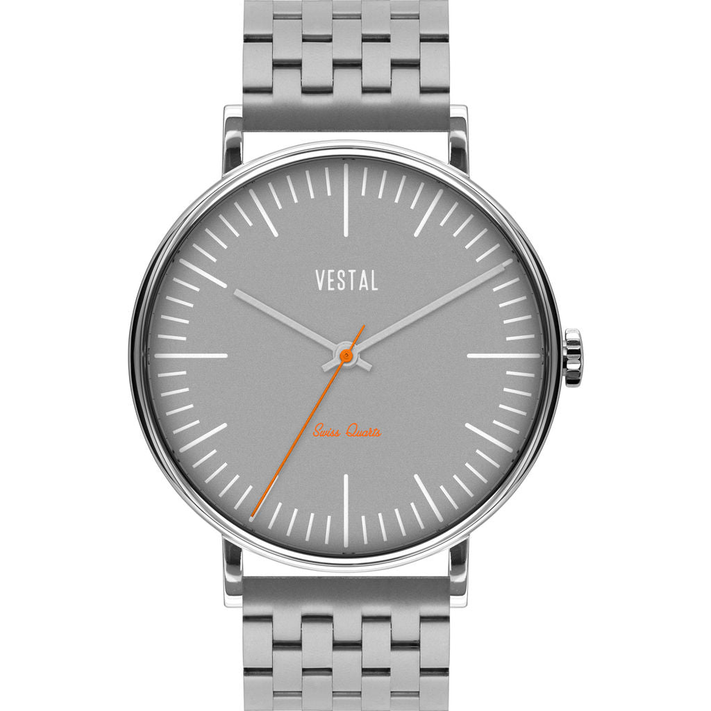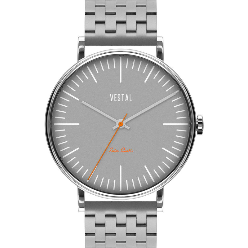 There is something to be said about a dependable watch that is equipped with quality materials and high character. The Sophisticate Metal Watch from Vestal’s watch collection never disappoints. Not only are their timepieces consistently reliable and precise, but Vestal's excellence and resilience is what separates them from other watch companies. Vestal watches are great accessories for any special occasion, as they are fine-tuned with style and expression. The Sophisticate is furnished with a silver stainless-steel 7-link strap that beautifully complements the silver case and grey dial. Some awesome features include Swiss Jewel Movement viewed through a clear crystal case-back, creating sophisticated perfection. The sleek design of the Sophisticate Series watches makes them the best option to wear at work or during play, perfect for everyday wear.