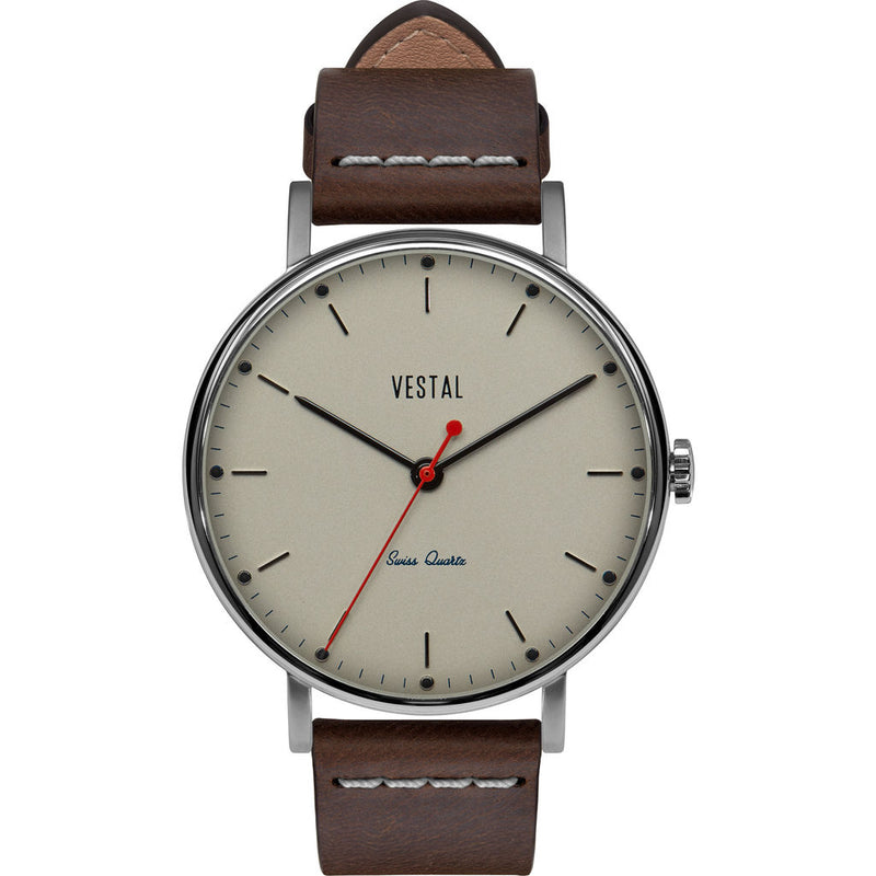 There is something to be said about a reliable timepiece that is equipped with quality materials and high character. The Sophisticate Italian Leather Watch from Vestal’s watch lineup is the best choice. Not only are their timepieces consistently reliable and precise, but Vestal's excellence and resilience is what separates them from other watch companies. Vestal watches are great accessories for any special occasion. The Sophisticate is furnished with a Dark Brown Italian leather strap that harmonizes beautifully with the silver case and metallic white dial. Some traditional features include a stainless-steel case with an extra thick raised crystal and screw-down logo plate. The sleek design of the Sophisticate Series watches makes them the best option to wear at work or during play, perfect for everyday wear.
