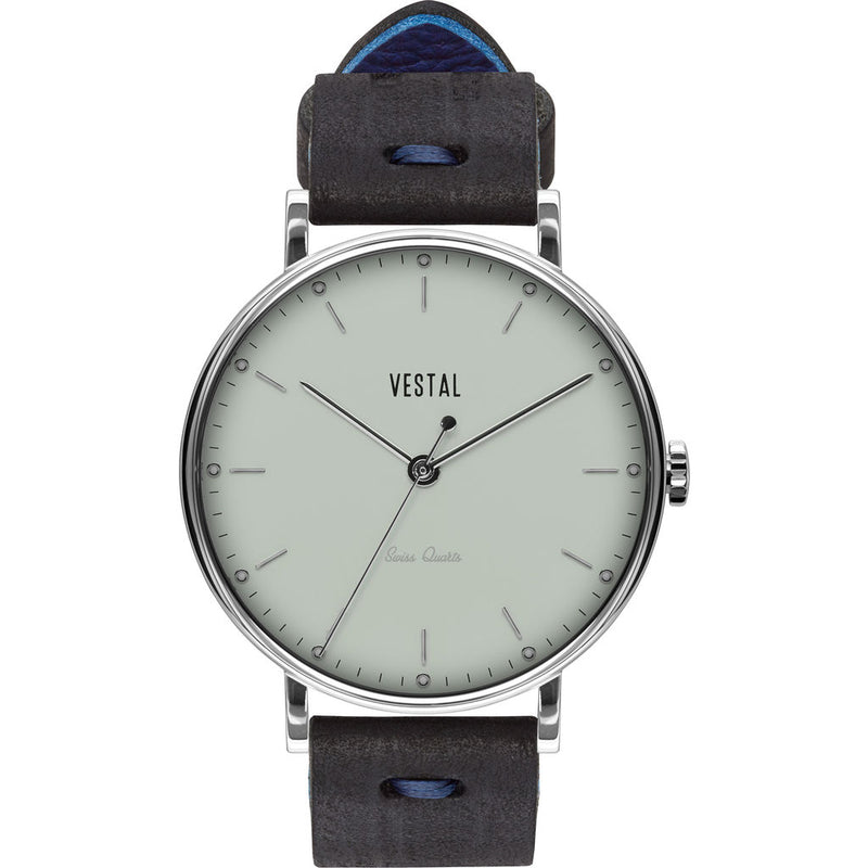 If you are looking for a high-quality timepiece that stands out, the Sophisticate Makers Watch from Vestal is the best choice. Not only are their timepieces consistently reliable and precise, but Vestal's quality and spirit is what separates them from other watch companies. Vestal watches are great for any occasion. The Sophisticate is furnished with black-blue handmade leather strap that harmonizes beautifully with the silver case and marine dial. Some traditional features include a stainless-steel case with an extra thick raised crystal and screw-down logo plate. The sleek design of the Sophisticate Series watches makes them the best option to wear at work or during play, perfect for an active lifestyle.