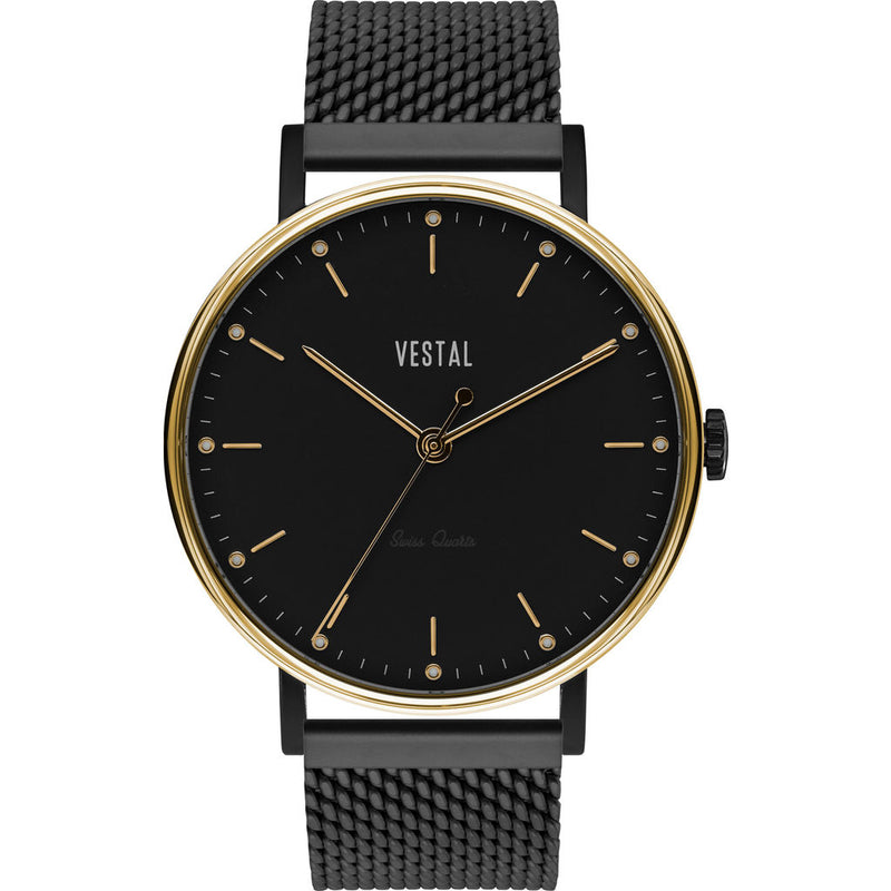 There is something to be said about a dependable watch that is equipped with quality materials and high character. The Sophisticate Metal Watch from Vestal’s watch collection never disappoints. Not only are their timepieces consistently reliable and precise, but Vestal's excellence and resilience is what separates them from other watch companies. Vestal watches are great accessories for any special occasion, as they are fine-tuned with style and expression. The Sophisticate is furnished with a black stainless-steel mesh strap that beautifully complements the gold case and black dial. Some awesome features include Swiss Jewel Movement viewed through a clear crystal case-back, creating sophisticated perfection. The sleek design of the Sophisticate Series watches makes them the best option to wear at work or during play, perfect for everyday wear.